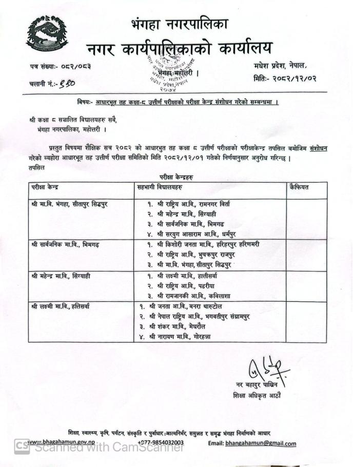 » आधारभुत तह कक्षा ८ उत्तीर्ण परीक्षाको परीक्षा केन्द्र संशोधन गरेको सम्बन्धमा ।