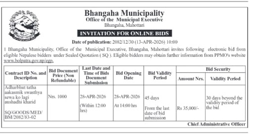 सार्वजनिक खरिद/बोलपत्र सूचना