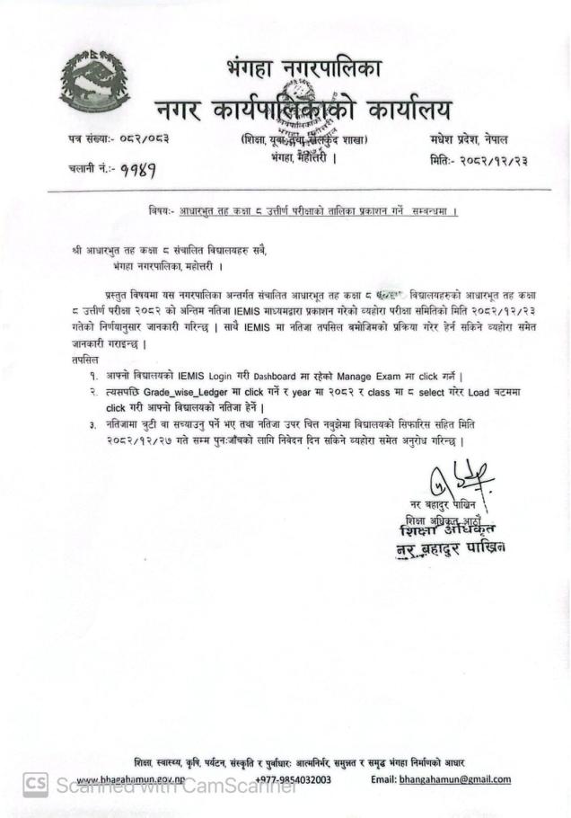 आधारभुत तह कक्षा ८ उत्तीर्ण ग्रेड वृद्धि परीक्षाको तालिका प्रकाशन गर्ने सम्बन्धमा ।